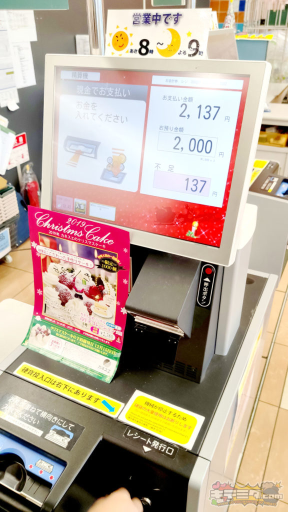 領収書の発行も投入後にできるので、必要な人はボタンを押すだけです。