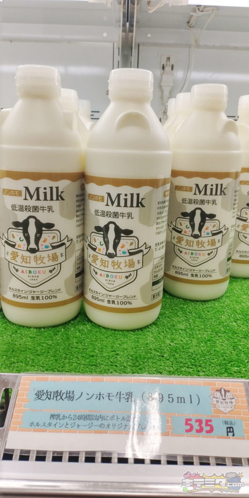 愛知牧場ノンホモ牛乳 -ノンホモMilk 低温殺菌牛乳 895ml 535円(税込み)