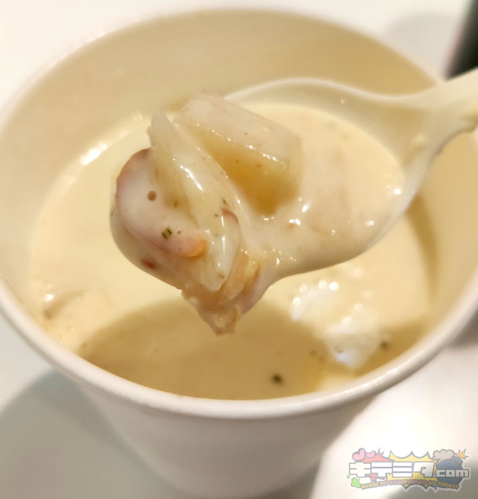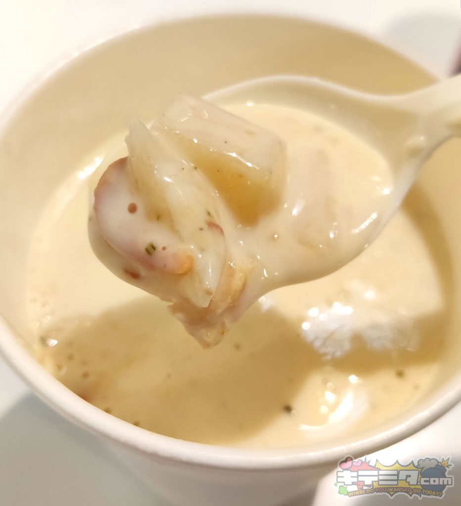 ホットドッグ180円(税込み/ソーダ付き)のコスパが高すぎて埋もれがちですが、今回はこのクラムチャウダーに注目してみます。