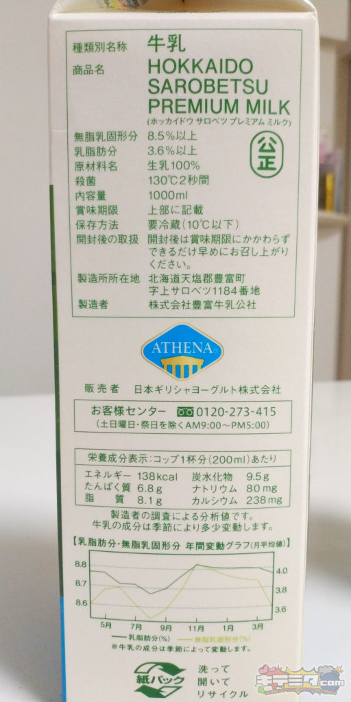 愛知牧場ノンホモ牛乳選手!!!!いきなりの反則技、乳脂肪分がタブにびっしり!!!!!!
