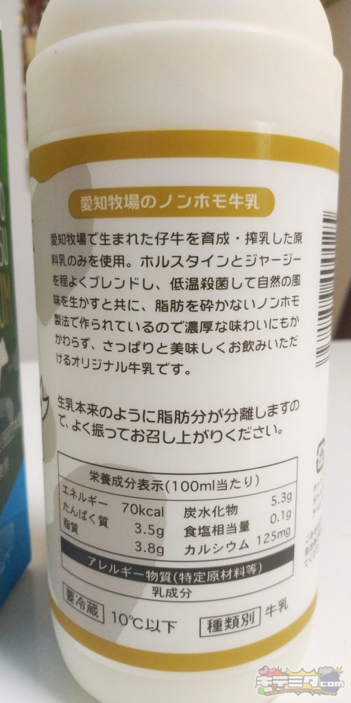 多少mlあたりの値は張ります(通常の2-3倍ぐらいですかね)が、愛知牧場のノンホモ牛乳、機会があれば是非オススメ!